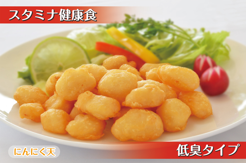 「にんにく天」は、にんにく好きの人であれば誰でもがクセになるスタミナ健康食品。芳醇な香りとホクホクの食感、口臭の原因となる酵素を独自技術で取り除いた低臭タイプが特長です。